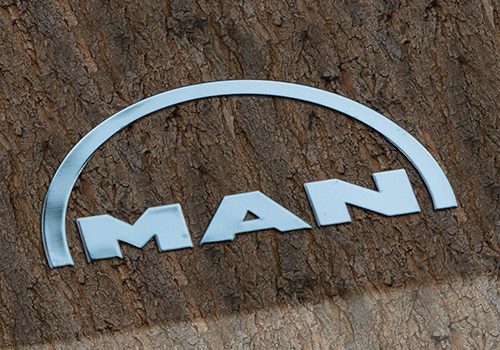 Markenemblem mit erhabenem Schriftzug silberfbg., Grund schwarz aus Kunststoff, Beispiel 011