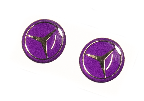 Markenbutton mit Hintergrund lila und Emblem in Metalloptik goldfbg., Beispiel 005