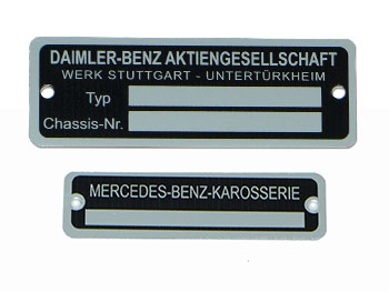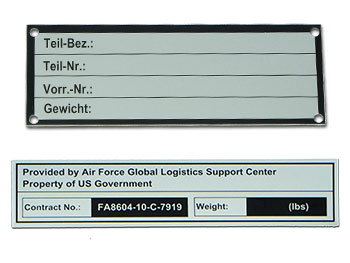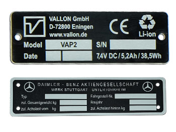 Beispiele bereits gefertigter Typenschilder usw.