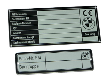 Hier die Schwerpunkte unsere Typenschilderfertigung: